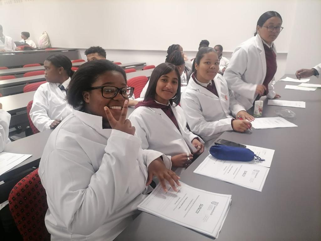 Physical science learners participating in lab experiments at Stellenbosch University